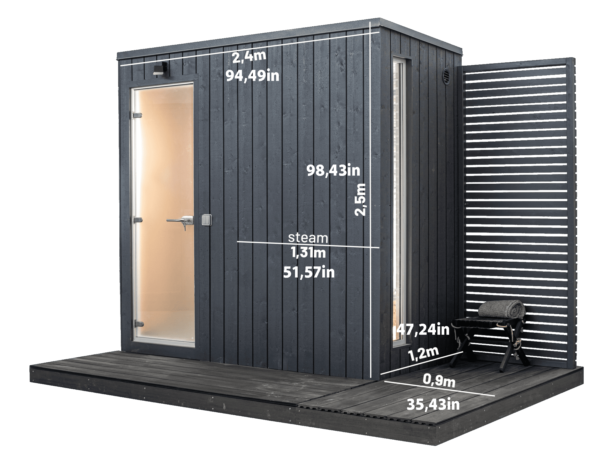 Our manufactured plug&play steam saunas are compact in size and easily transportable. Good partners will deliver the ready-made sauna to your yard, lift it into place, and all you have left to do is connect the electricity. And then, your sauna evening can begin!