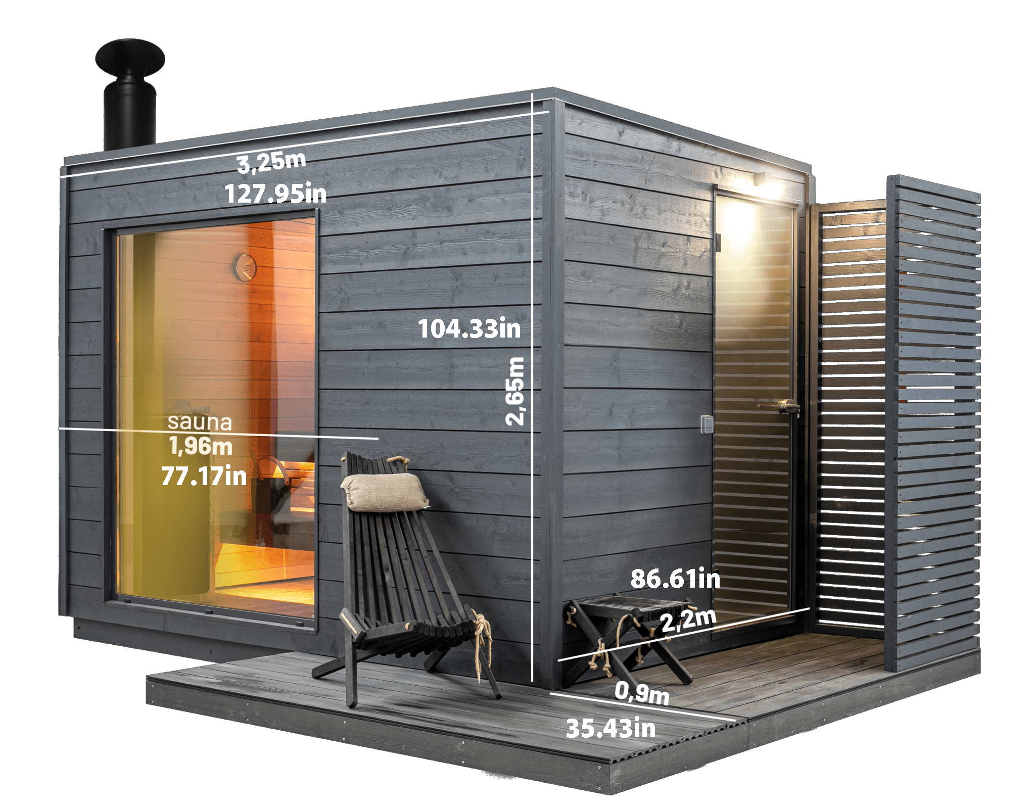 Our manufactured plug&play wood-burning saunas are compact in size and easily transportable. Good partners will deliver the ready-made sauna to your yard, lift it into place, and all you have left to do is connect the electricity. And then, your sauna evening can begin!